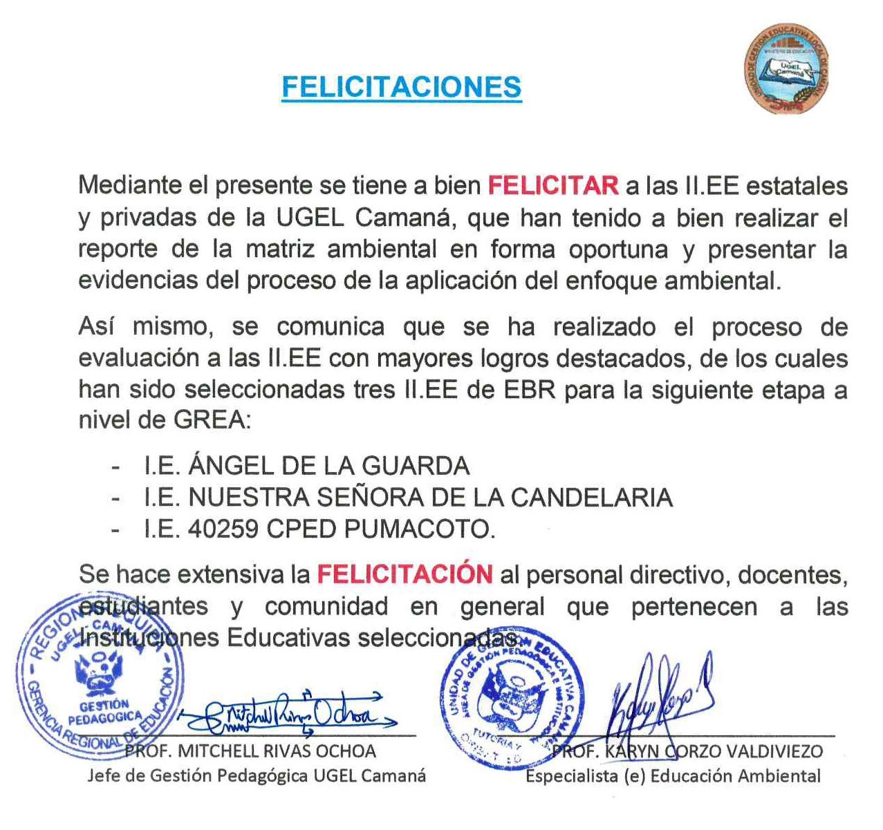 LA UGEL CAMANÁ COMUNICA EL CAMBIO DE ESCENARIO DEL EVENTO "PREMIACIÓN Y CLAUSURA DE LOS JUEGOS DEPORTIVOS ESCOLARES NACIONALES JDEN 2017", LA MISMA QUE SE IBA A LLEVAR EN EL COLISEO JULIO ERNESTO GRANDA ZUÑIGA QUE POR MOTIVOS DE FUERZA SE REALIZARÁ EN EL COLISEO SALVADOR LINDLEY EL DÍA 20 DEL PRESENTE A HORAS 3:00 p.m. AGRADECEMOS ANTICIPADAMENTE SU COMPRENSIÓN.